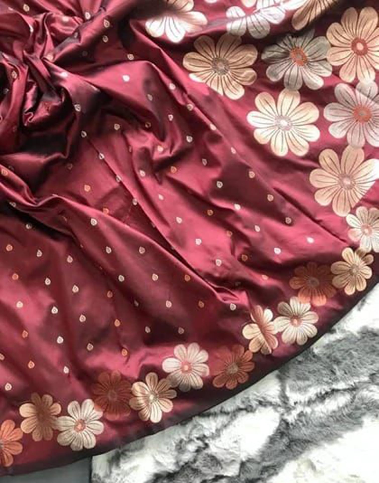 • Colour:: Saree Color: Maroon | Blouse Color: Maroon, Copper