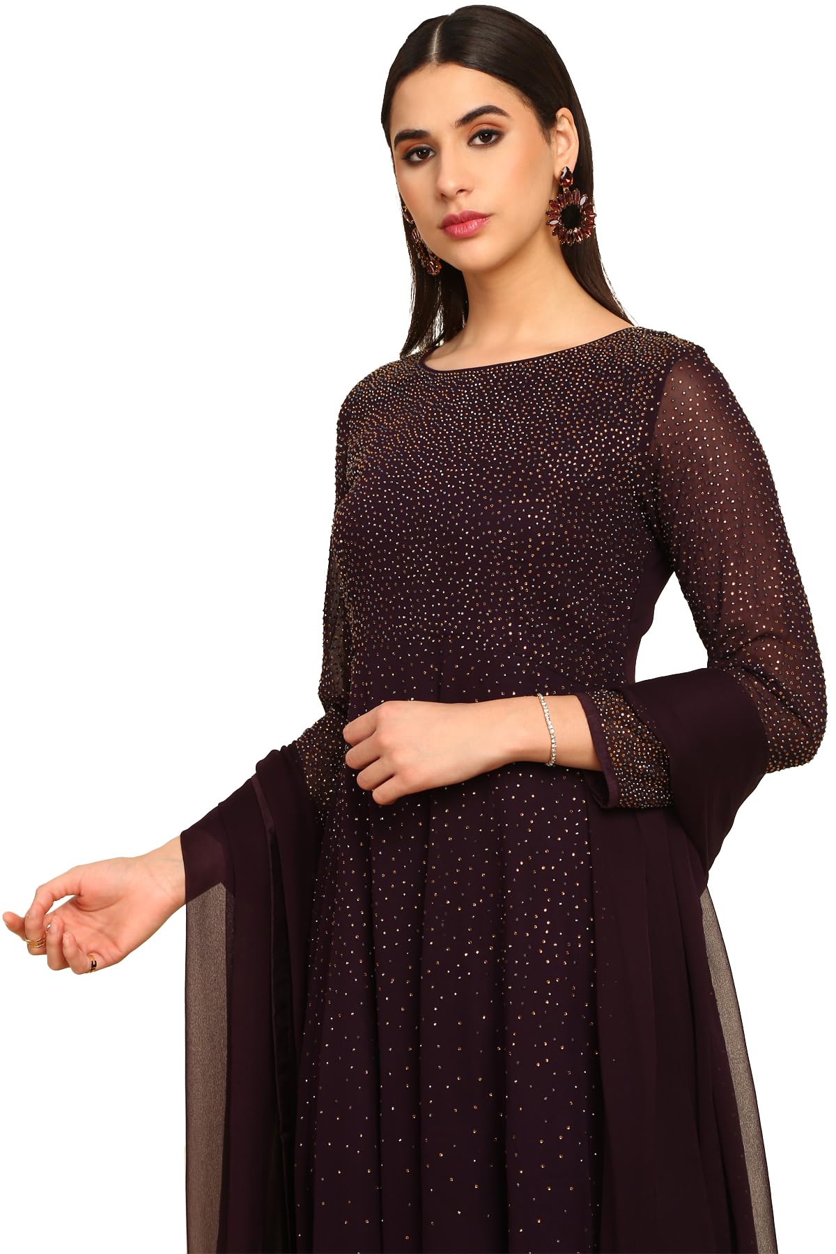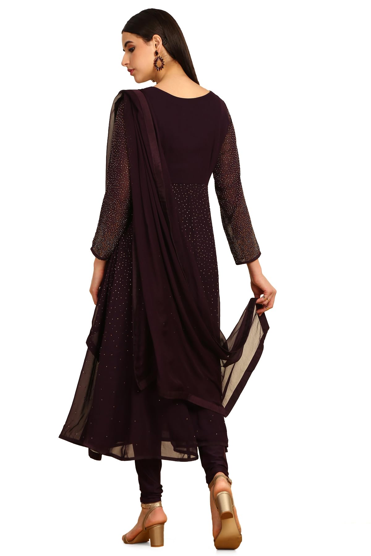 Soch Purple Pure Georgette Embroidered Chudidar Set