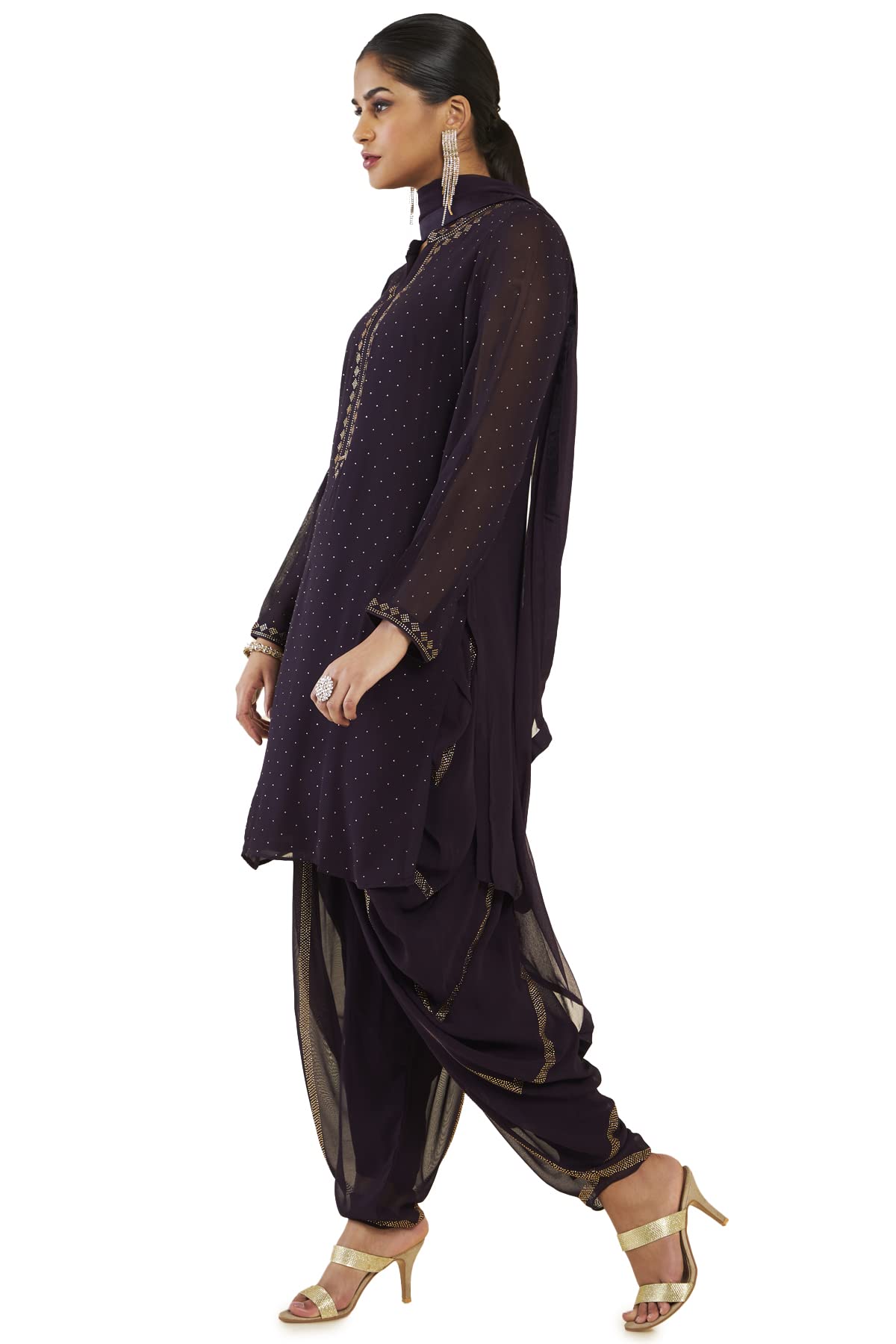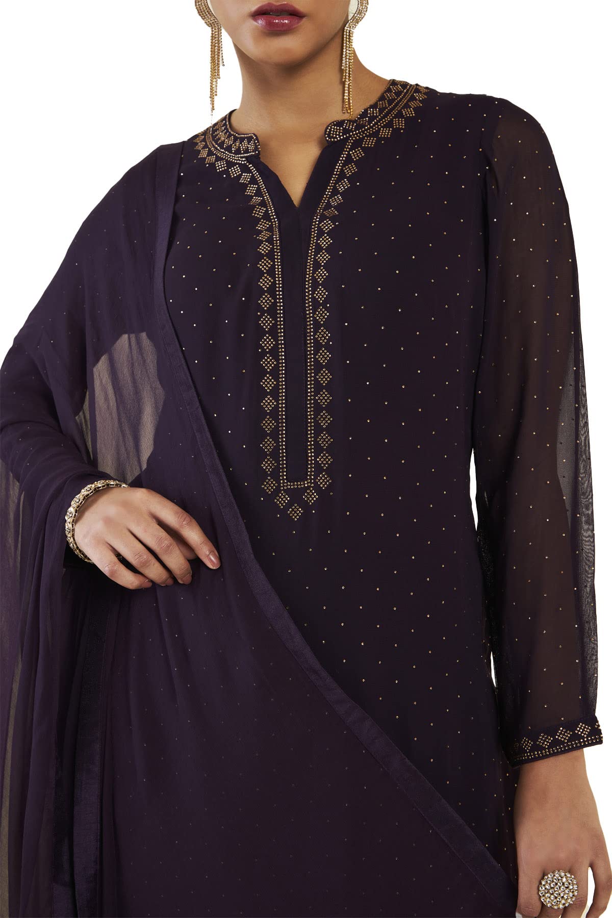 - The Kurta of this Purple Georgette has a Mandarin Collar with Full Sleeve