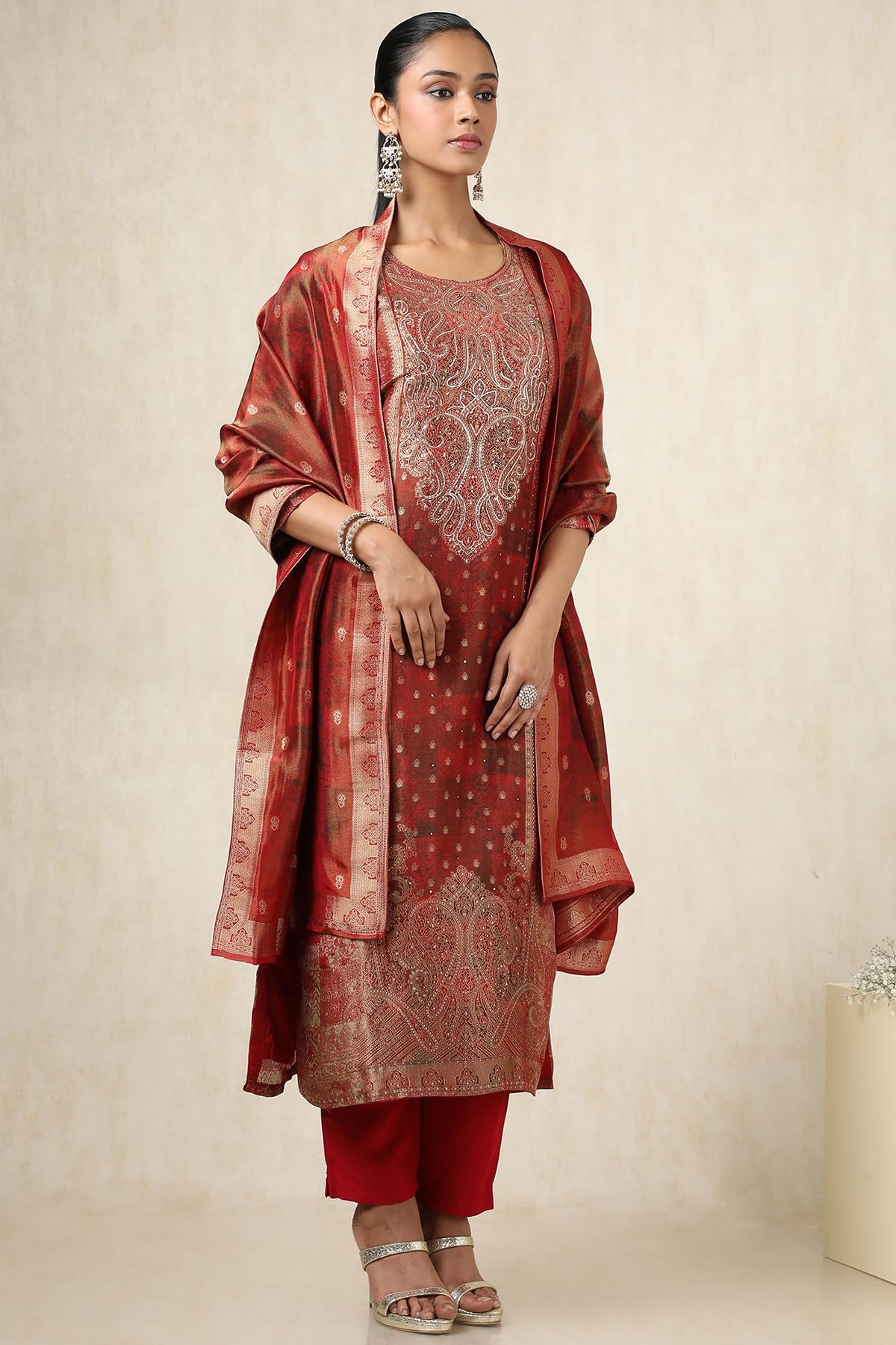 Soch Women’s Dola Silk Salwar Suit Set (EWS5CD21718_Maroon_M)