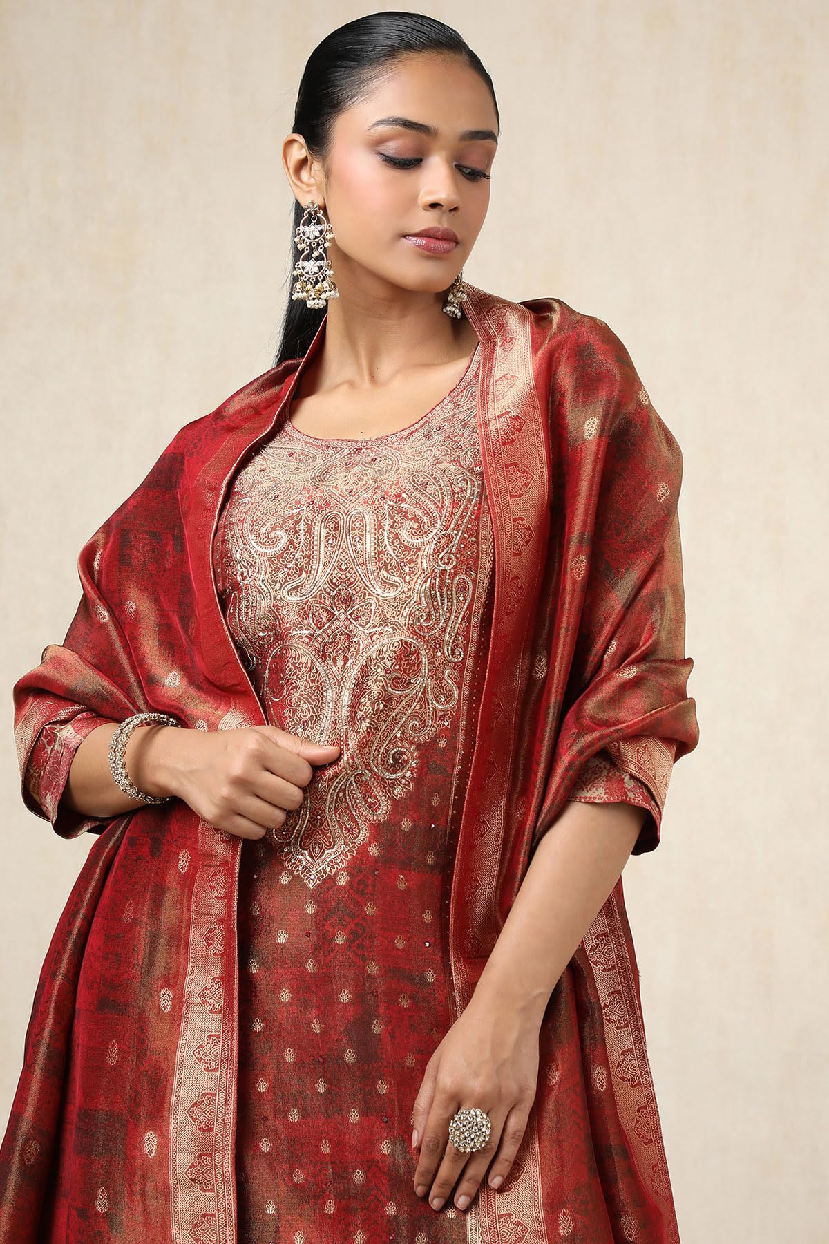 Soch Women's Dola Silk Salwar Suit Set (EWS5CD21718_Maroon_M)