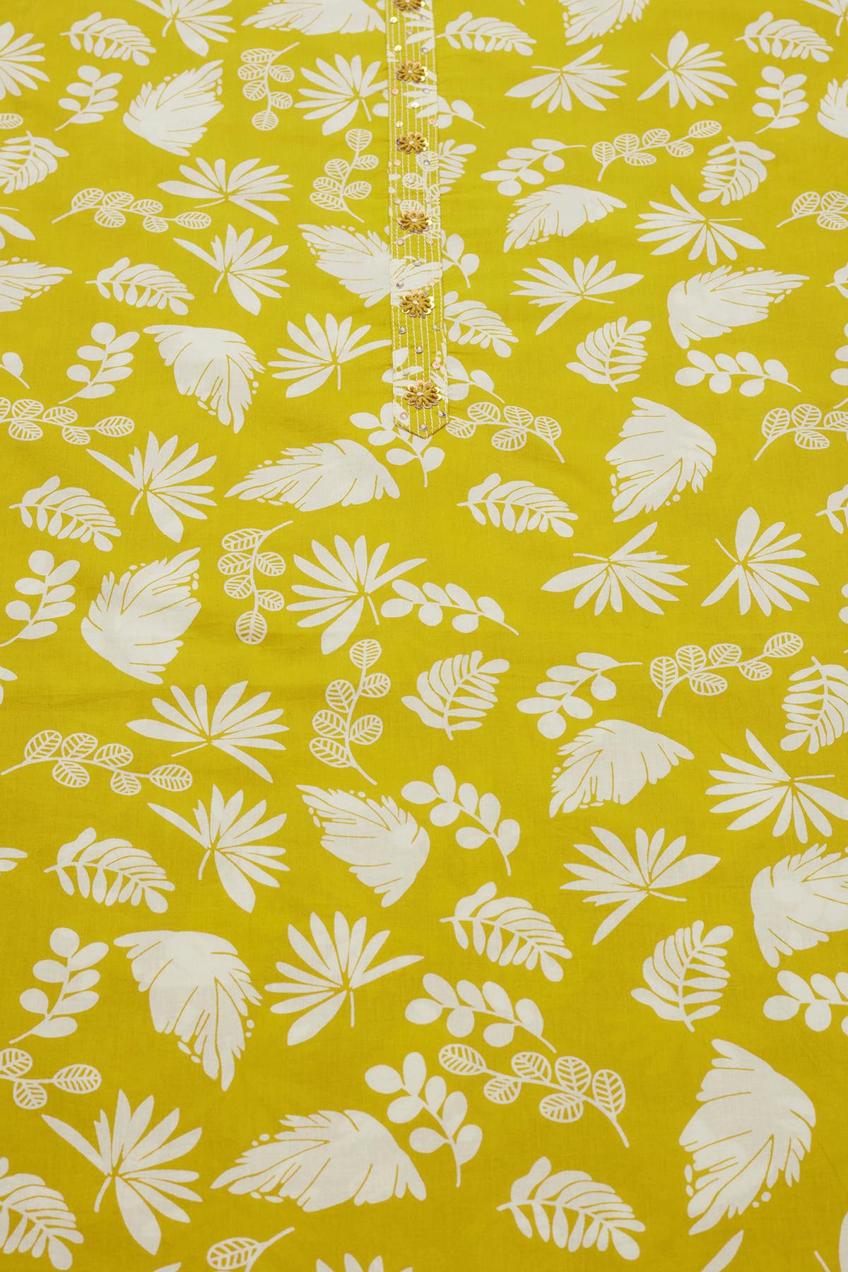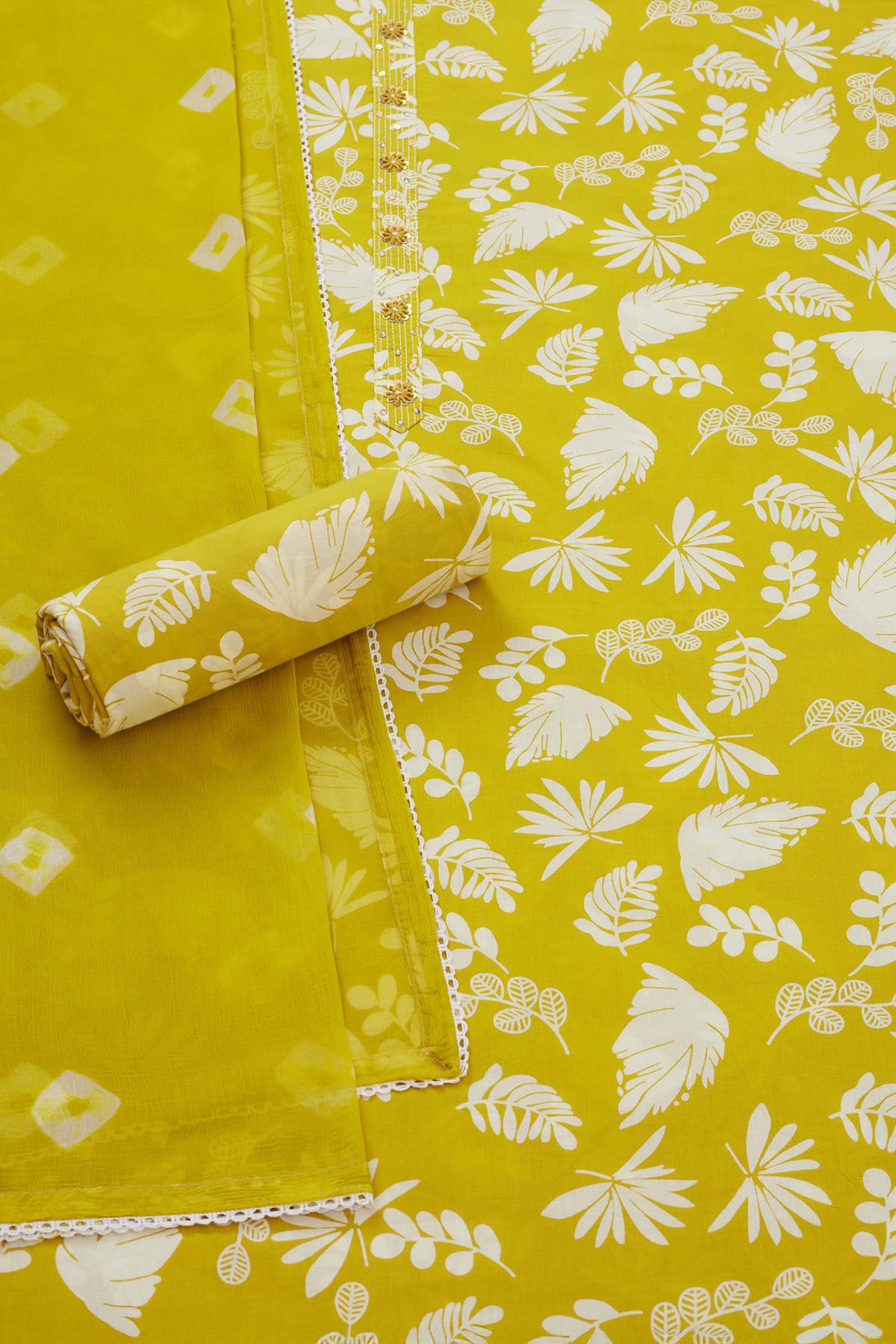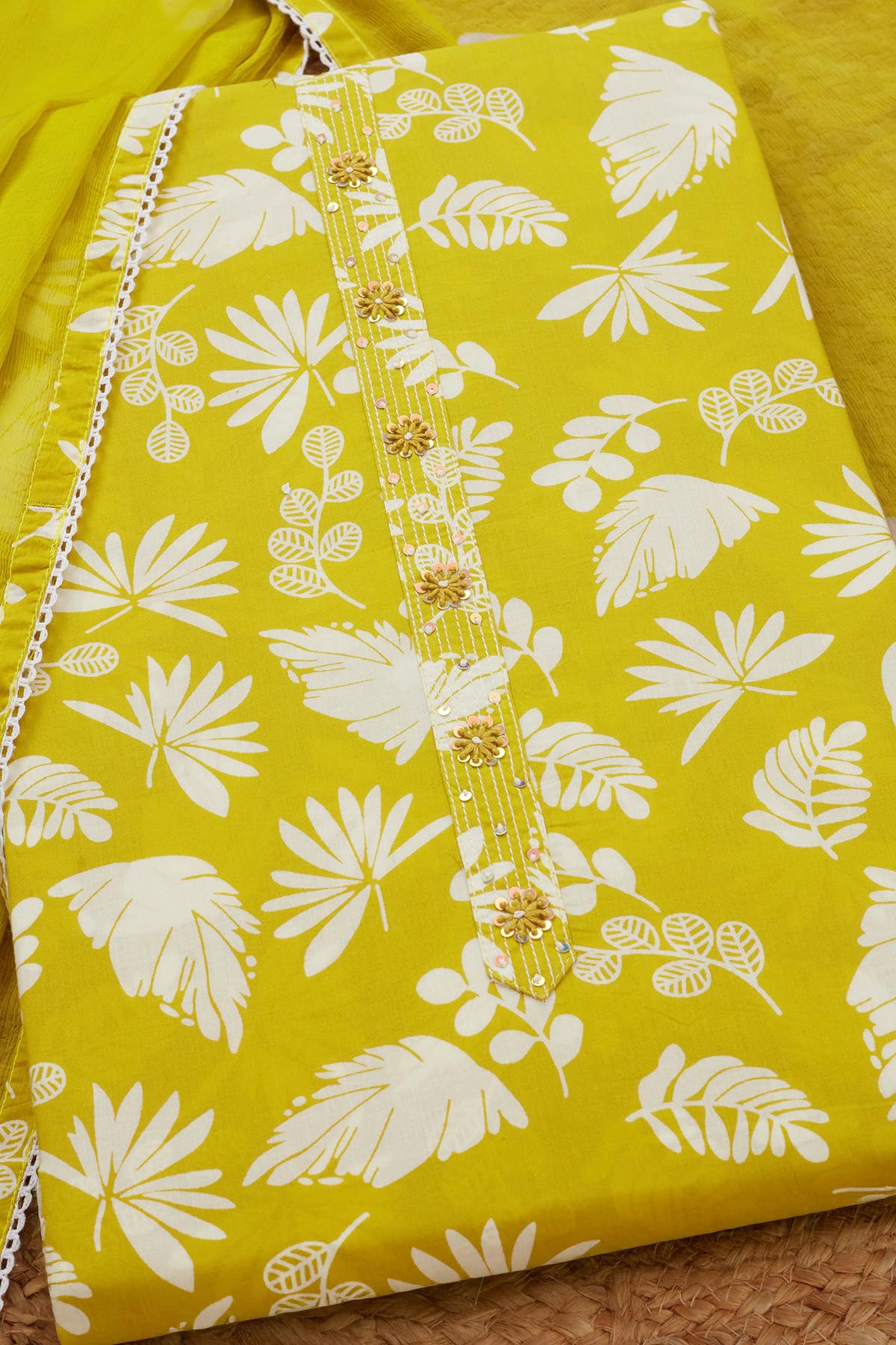Soch Womens Light Green Cotton Botanical Print Unstitch Dress Material With Sequins