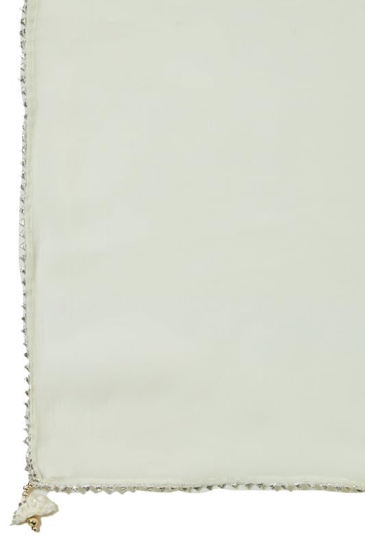 - Off White Georgette Suit Set has Round Neck and 3/4th Sleeves