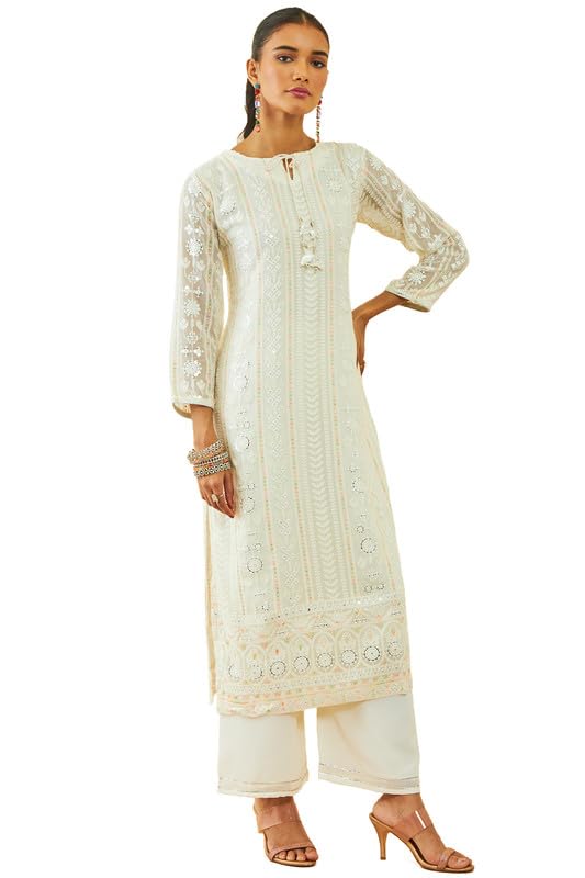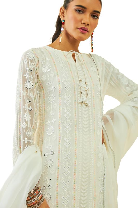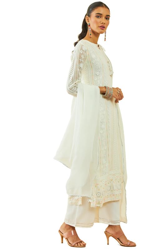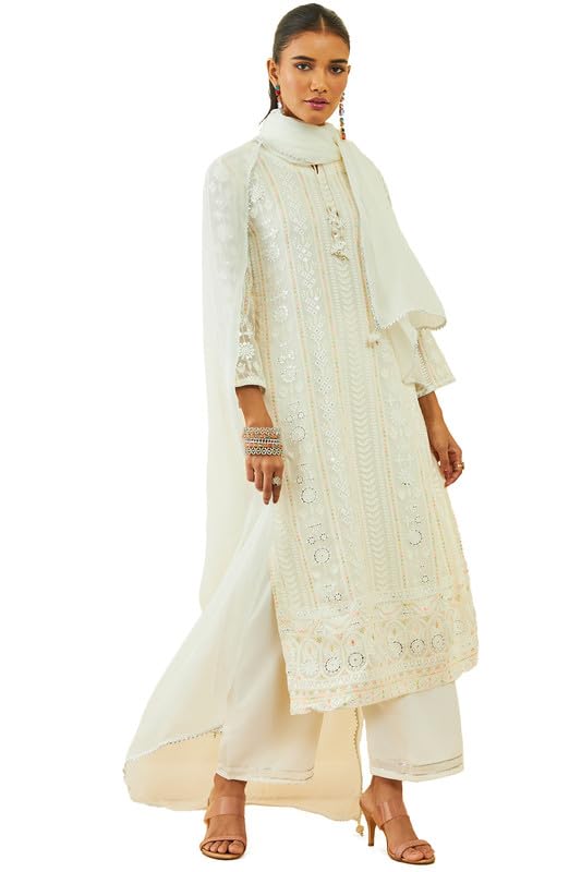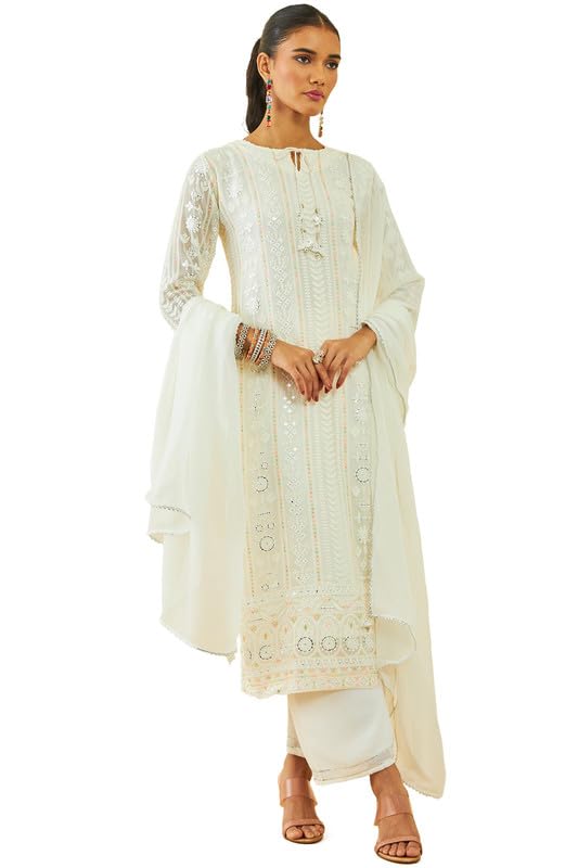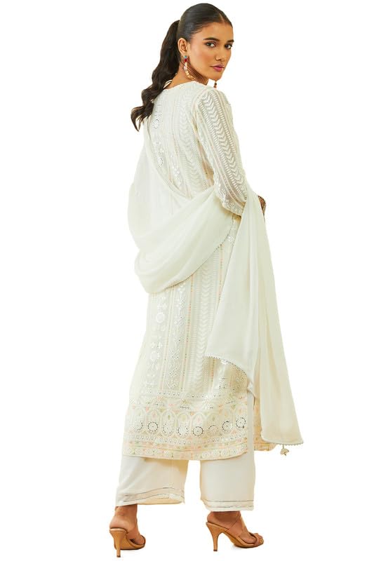 Soch Womens Off White Georgette Embroidered Salwar Suit With Sequins