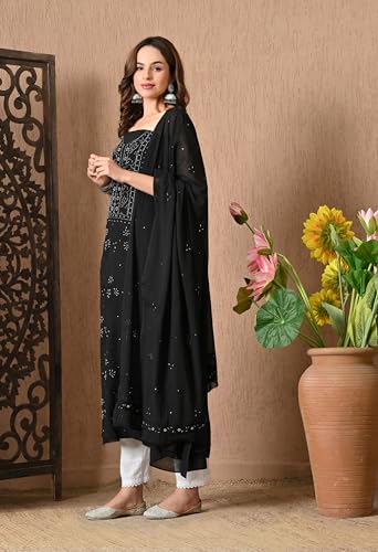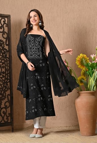 - Dupatta Fabric : Mul Cotton | Dupatta Length : 2.5 Mtrs | Dupatta Color : Black | Dupatta Work : ChikanKari Work Gotta Patti Work