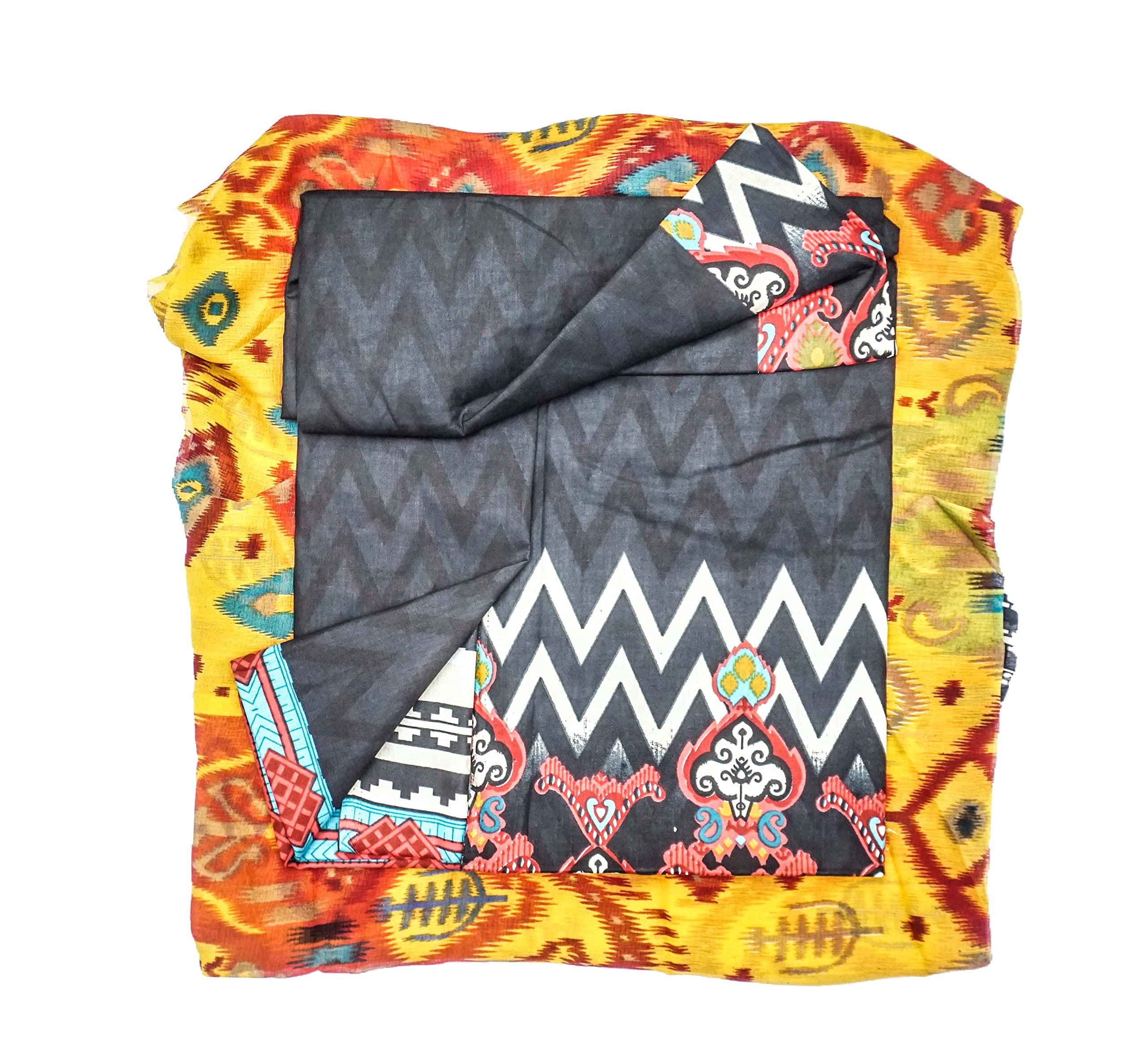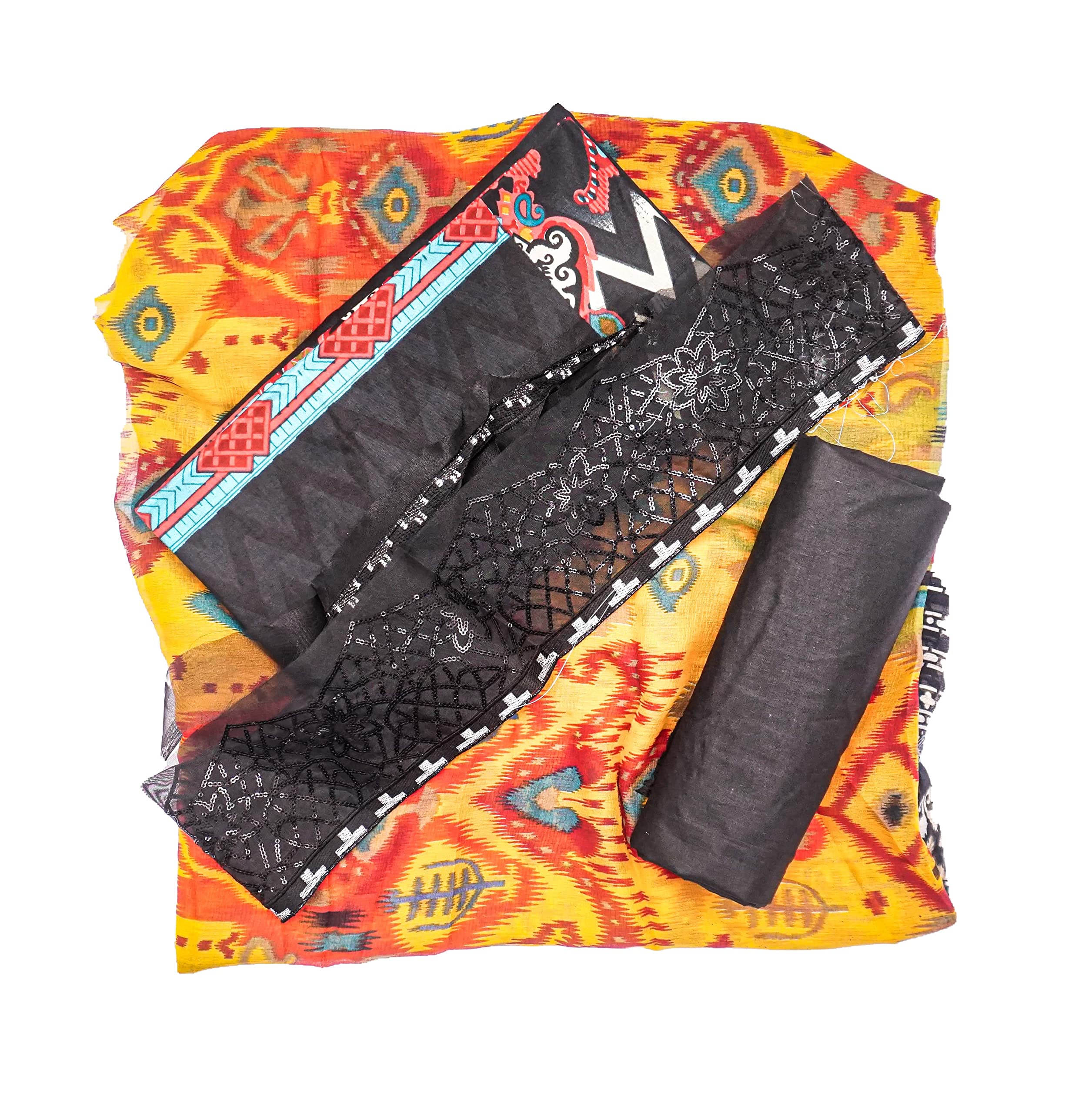 TREASURED THREADS Pakistani Hand Embroidered Pure Cotton Lawn Unstiched Suit Material With Patches
