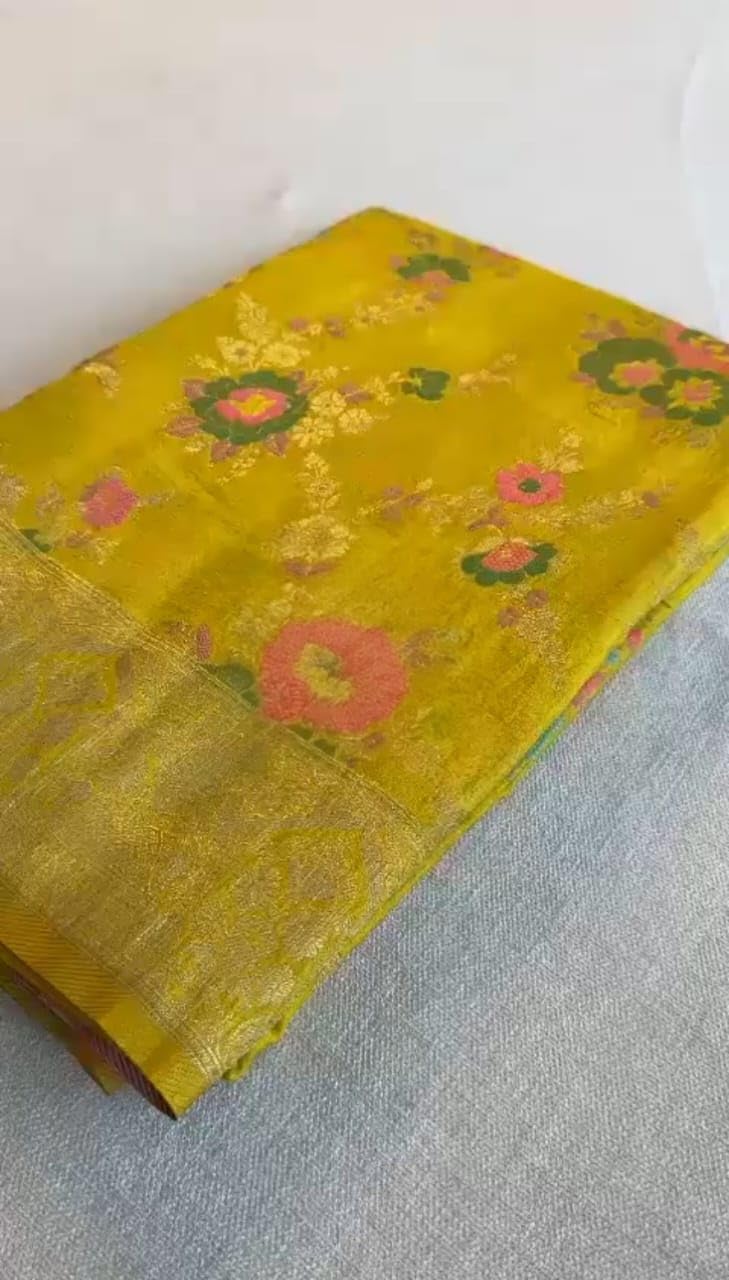 Jacquard lithi silk sarees are a luxurious choice, known for their intricate patterns and rich texture. These sarees often feature a blend of traditional and contemporary designs, showcasing ornate motifs woven into the fabric using a jacquard loom.