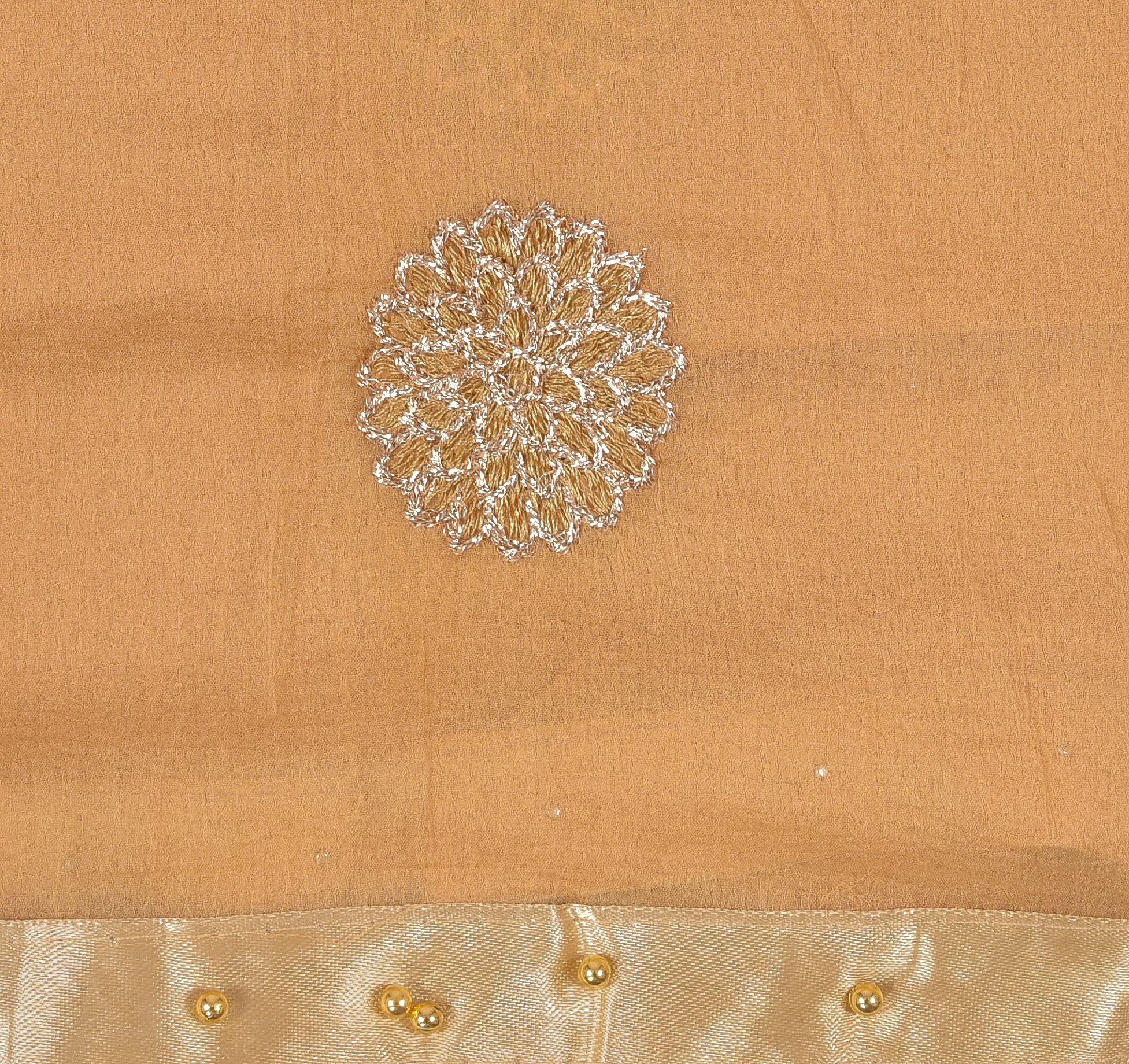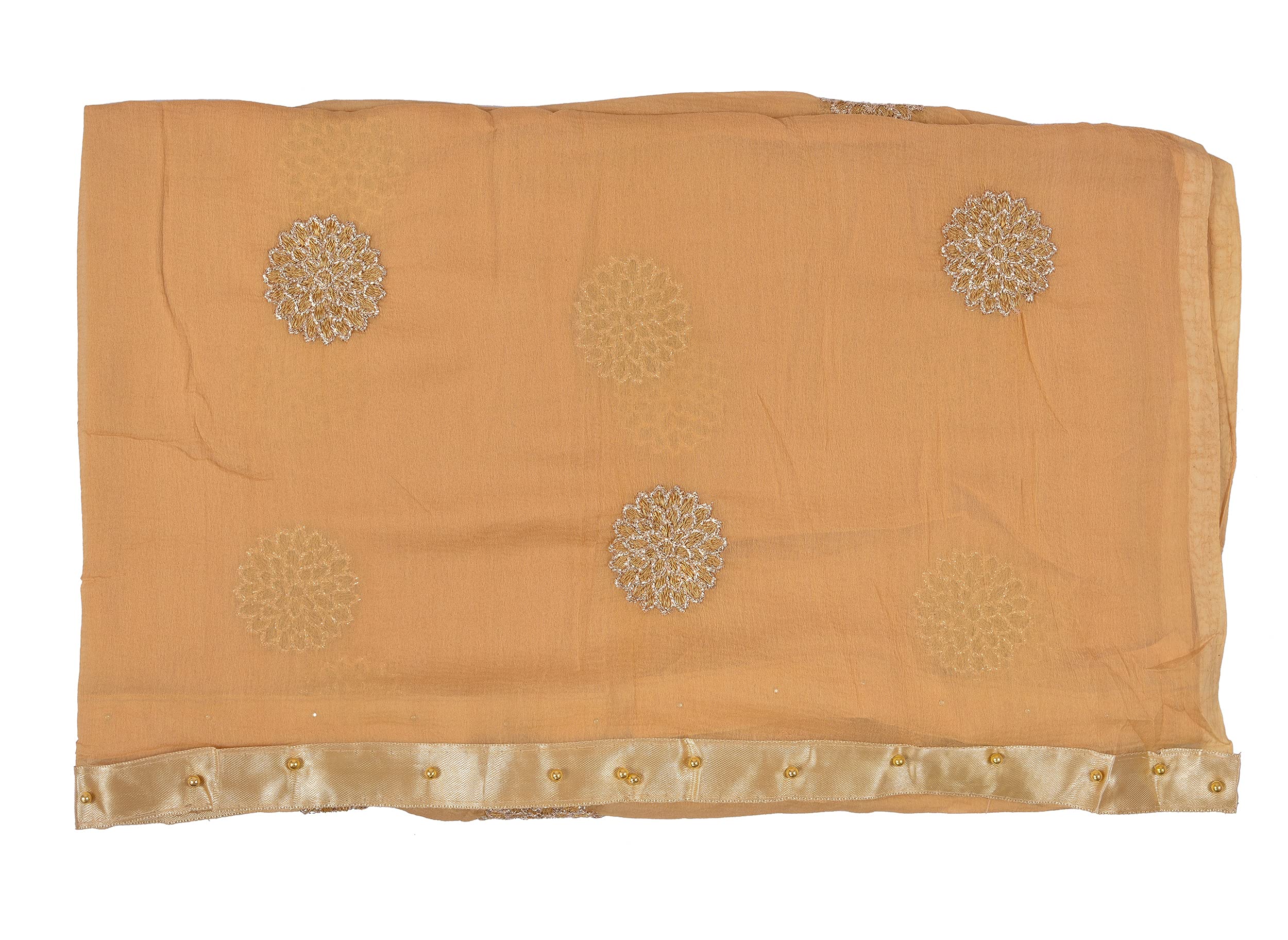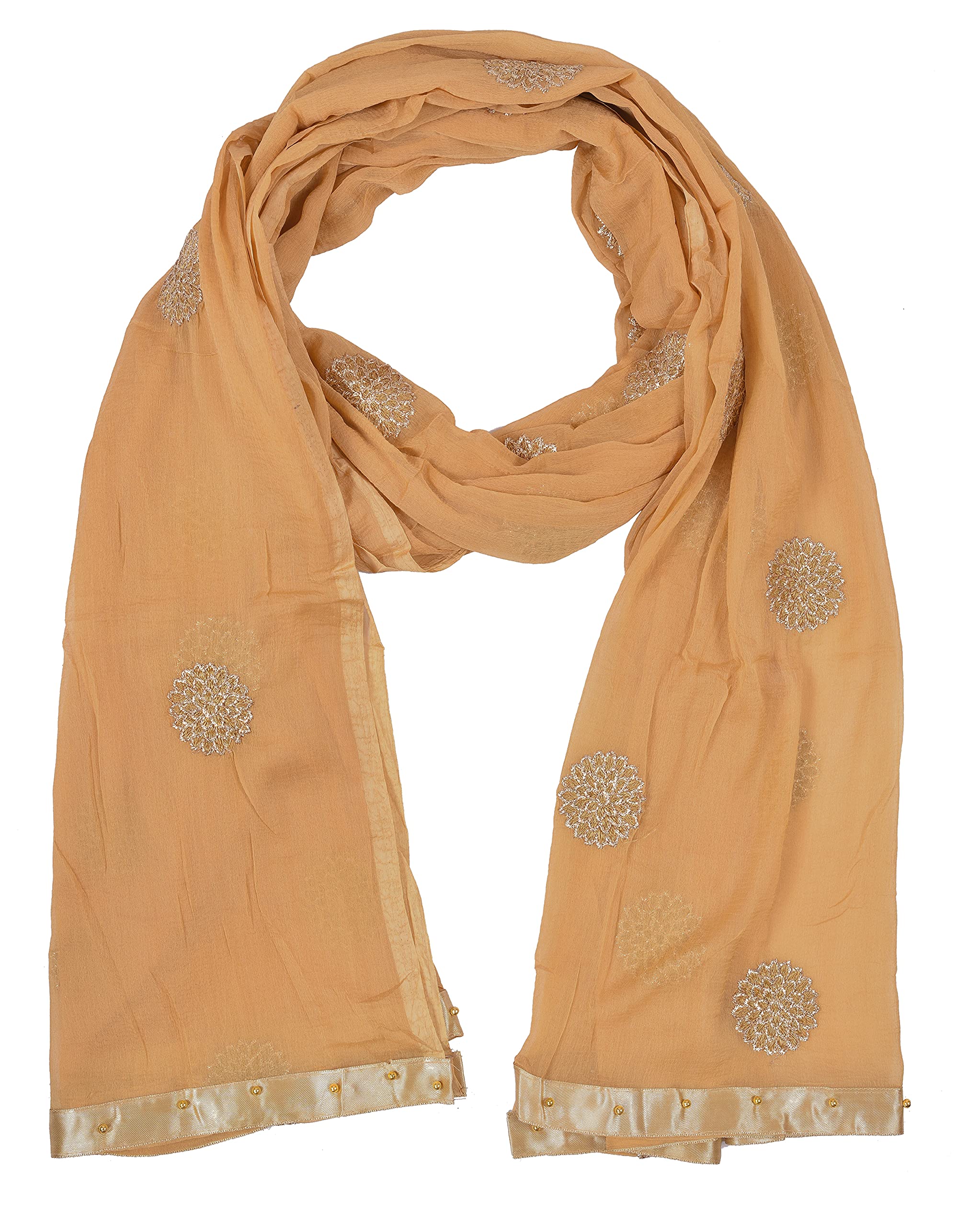 YOUTHQUAKE Flower Embroidered Work Chiffon Dupatta for Womens & Girls with Fancy Moti Lace (Beige) 2.25 Meter