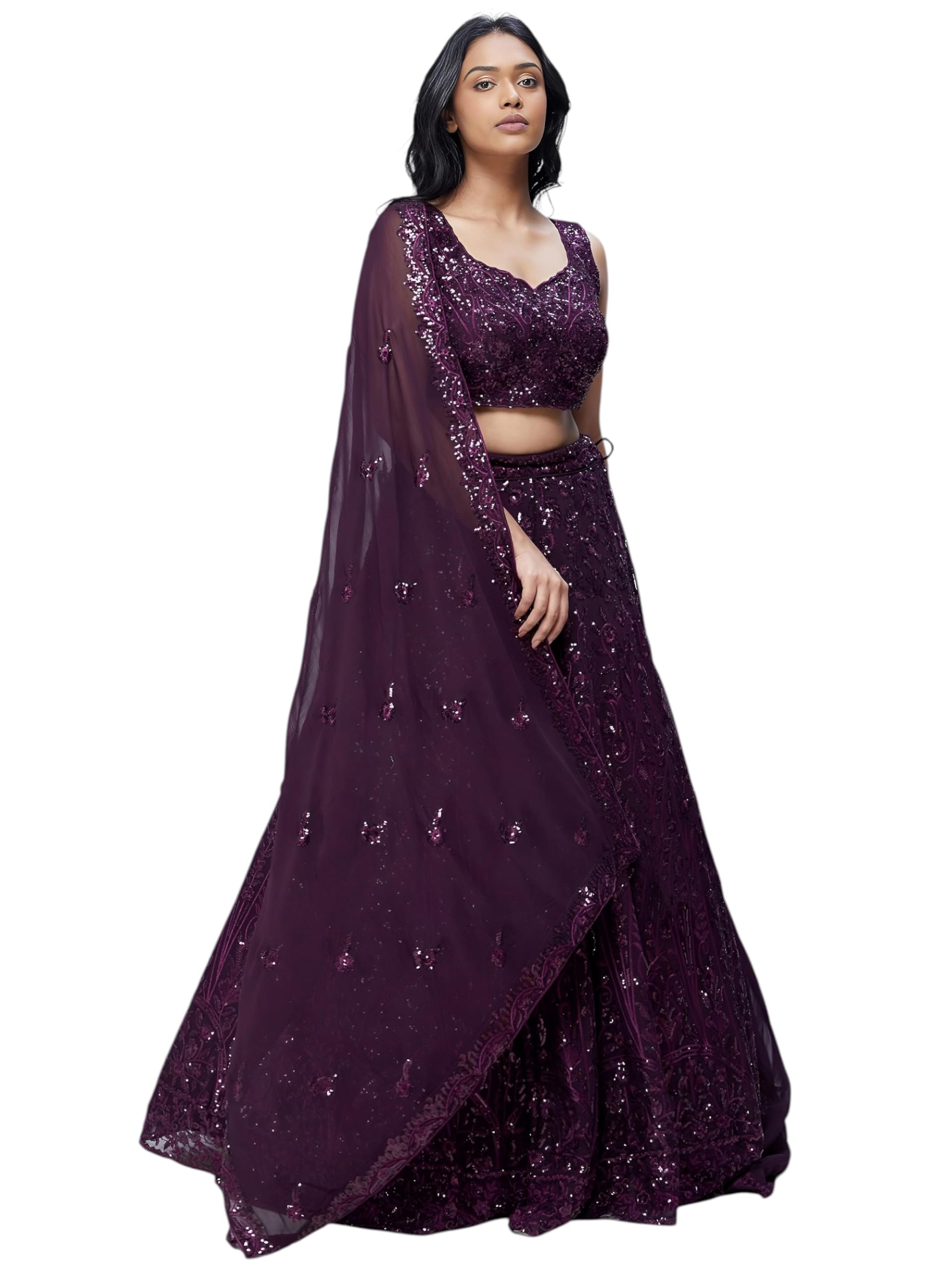 - Lehenga Work: Threads Sequins Embroidered; Blouse Work: Threads Sequins Embroidered; Dupatta Work: Threads Sequins Embroidery