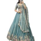 • Measurements: Lehenga(Semi-Stitched) Flair : 3.50mtr, waist-43″, height-43″; Blouse(Unstitched) Size: up to 44″; Dupatta Length: 2.25 mtr