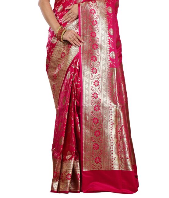 Aishani Collection Woven Pure Katan Silk Banarasi Wedding Traditional Saree for Women with bp (Multicolor) (Dark Pink1)