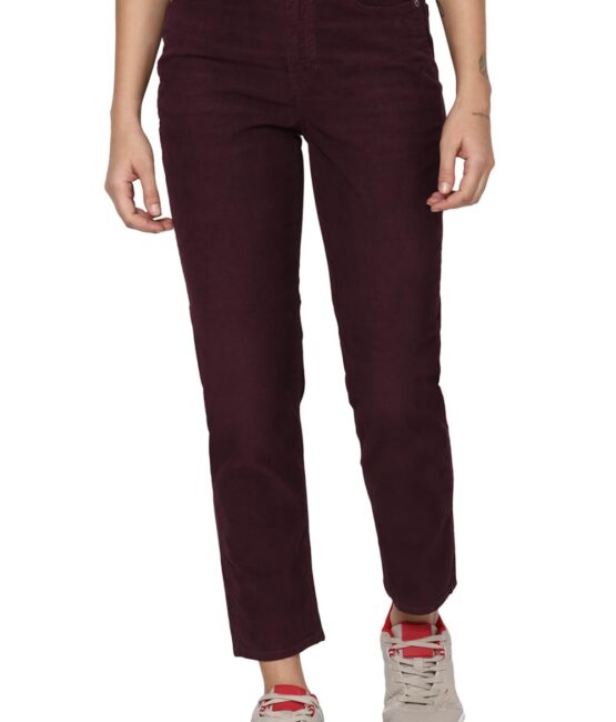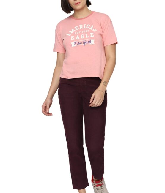 American Eagle Women Burgundy Stretch Corduroy Mom Straight Jean